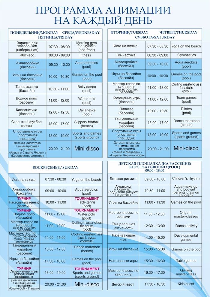 - специальные зоны в спортивном и игровом центре